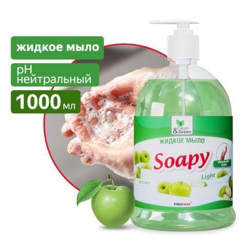 Мыло жидкое 1л с дозатором Soapy Light Яблоко Clean&Green 1/6 купить в Ижевске по низкой цене оптом и дешево с доставкой