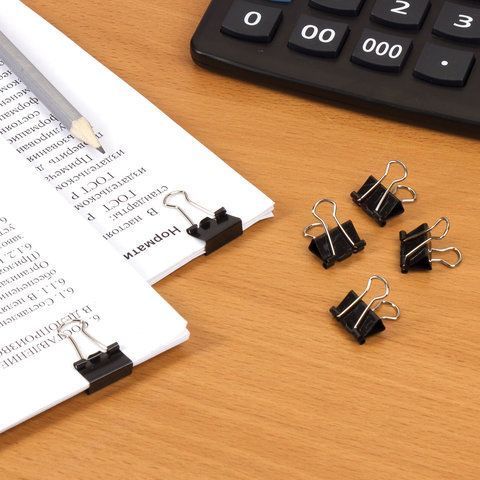 Зажимы для бумаг 15мм на 45л (12шт) черные в картонной коробке Brauberg 1/12 оптом и в розницу в Ижевске купить