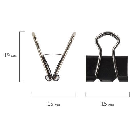 Зажимы для бумаг 15мм на 45л (12шт) черные в картонной коробке Staff 1/12/360 оптом и в розницу в Ижевске купить