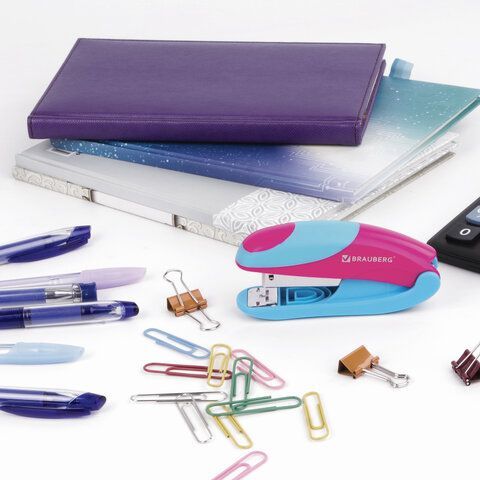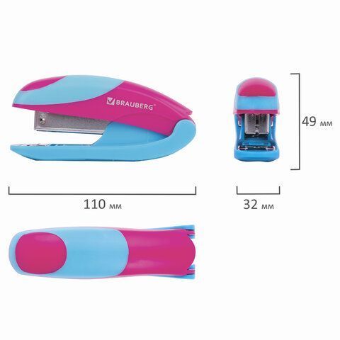Степлер №24/6 26/6 до 20л ассорти с резиновыми вставками BRAUBERG MIX 1/12
