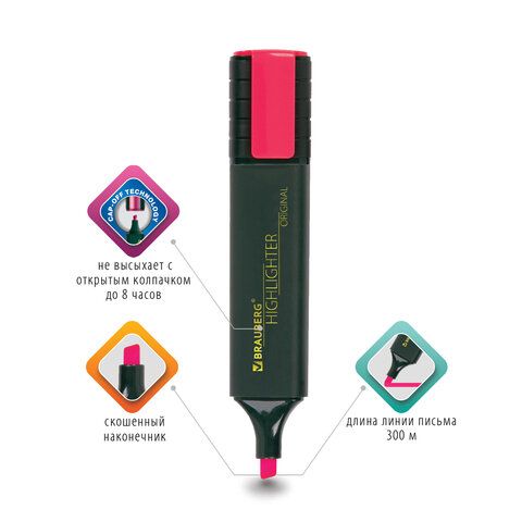 Текстмаркер розовый 1-5 мм скошенный наконечник BRAUBERG ORIGINAL 1/12/576 купить оптом и в розницу в Ижевске