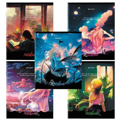 —Тетрадь 48л А5 клетка обложка картон BRAUBERG Anime 1/10/100