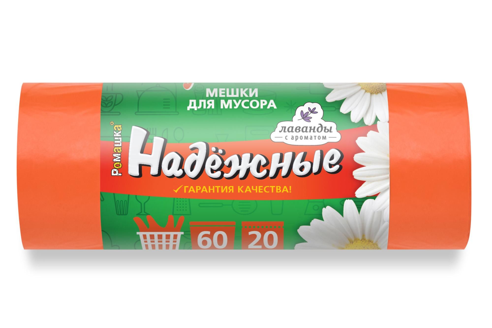 Мешок для мусора 60л рулон ПСД (60х74)-15 оранжевые с ушками НАДЕЖНЫЕ 12г Ромашка (20шт) 1/20 – купить хозяйственные товары в розницу с доставкой