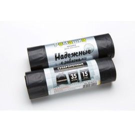 —Мешок для мусора 35л рулон ПСД (50х60)-18 с завязками черные НАДЕЖНЫЕ 10,66г Ромашка (15шт) 1/30