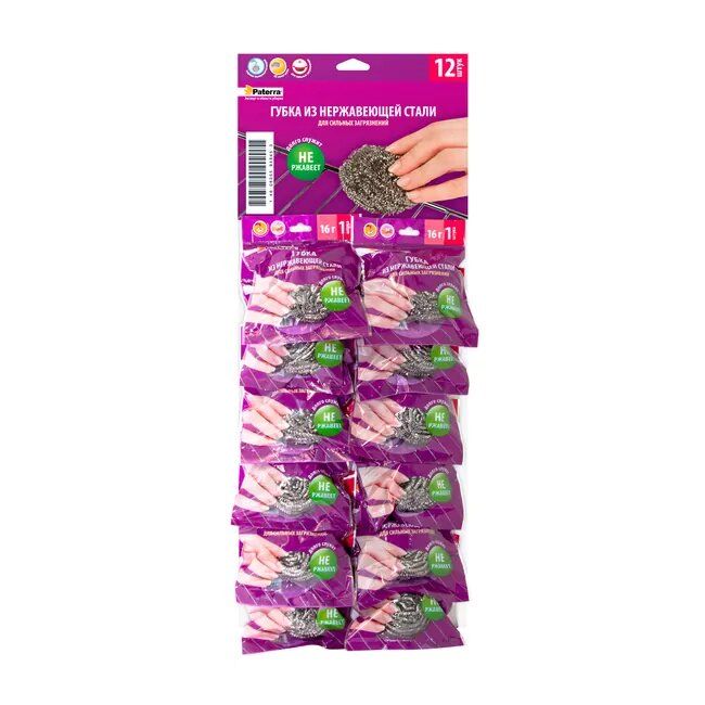 Мочалка для посуды стружка на листе Paterrа 12/360 – купить хозяйственные товары в розницу с доставкой