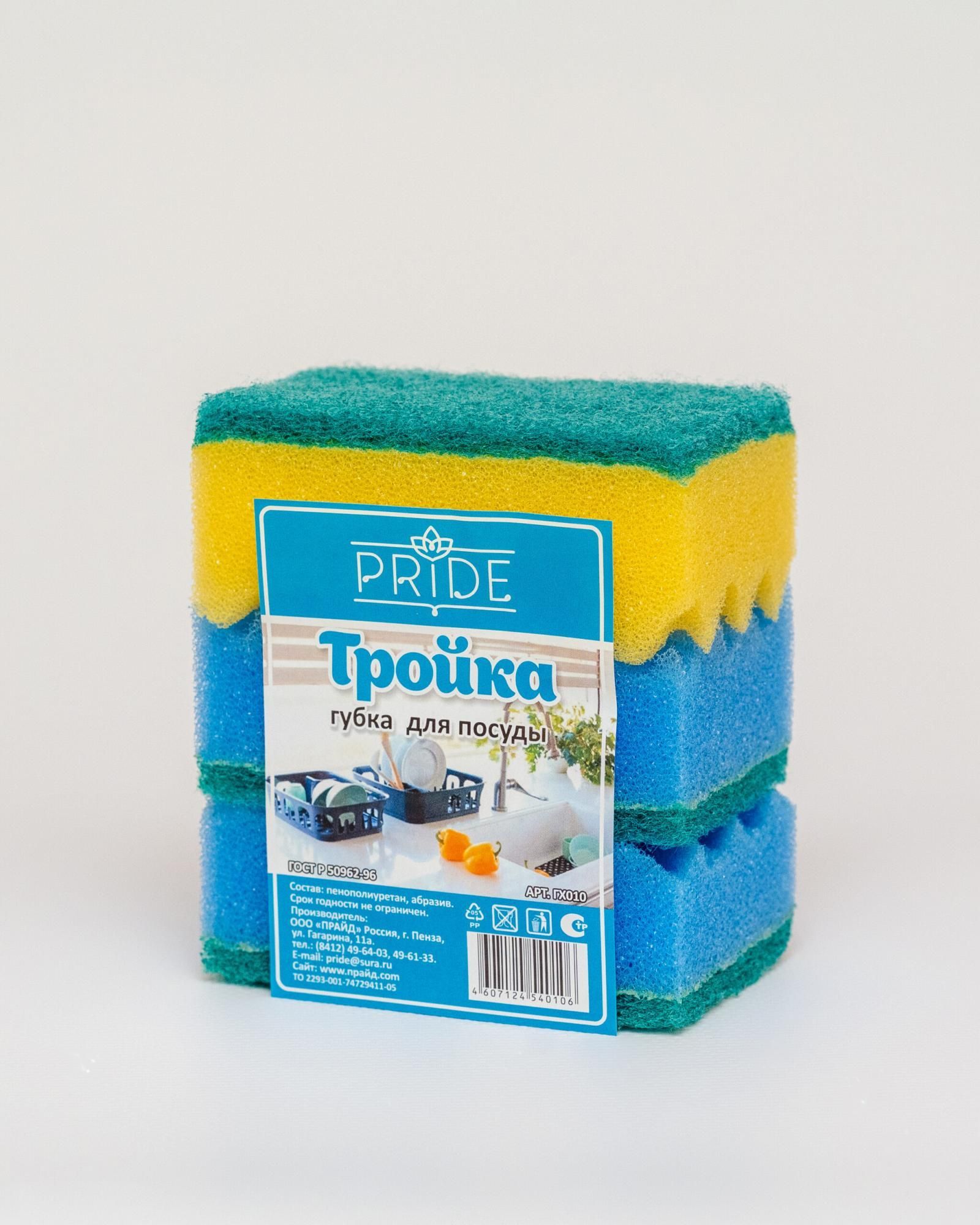 Губка для посуды (3шт) 90х60х35мм Тройка 1/30 – купить хозяйственные товары в розницу с доставкой