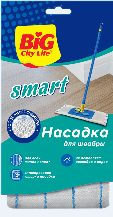 Насадка МОП плоская 42х13см Smart BIG City карманы микрофибра 1/30 – купить хозяйственные товары в розницу с доставкой