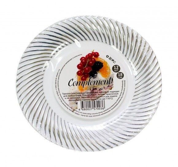 Тарелка пластиковая d-180 белая с серебряной волной Complement ламинированная (12шт) 1/20 купить в Ижевске с доставкой - УПАК.РФ