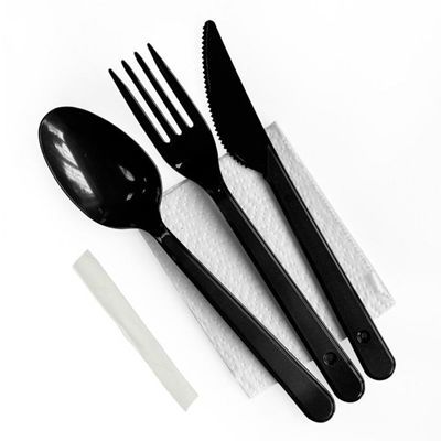 Набор одноразовой посуды №5 (вилка, столовая ложка, нож, зубочистка, салфетка) черный1/300 купить в Ижевске с доставкой - УПАК.РФ