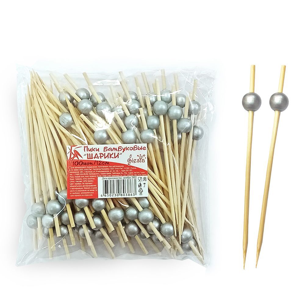 Пика для канапе Шарики серебро 12см (100шт) 1/50 купить в Ижевске с доставкой - УПАК.РФ