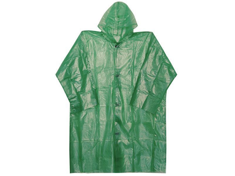 —Плащ-дождевик с рукавами и капюшоном на липучке зеленый ПВД 70 мкм 1/50