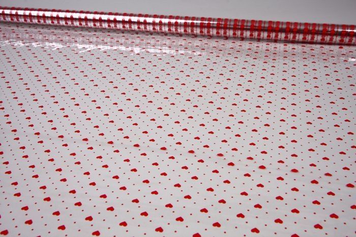 —Ролик 70см х8м пленка полипропилен с рисунком Мелкие сердца, красный 1/10
