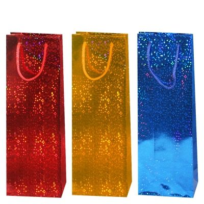 Пакет подарочный бумажный под бутылку 12,3x36,2x7,8см Голография 1/360 оптом и в розницу в Ижевске, цены в каталоге с доставкой