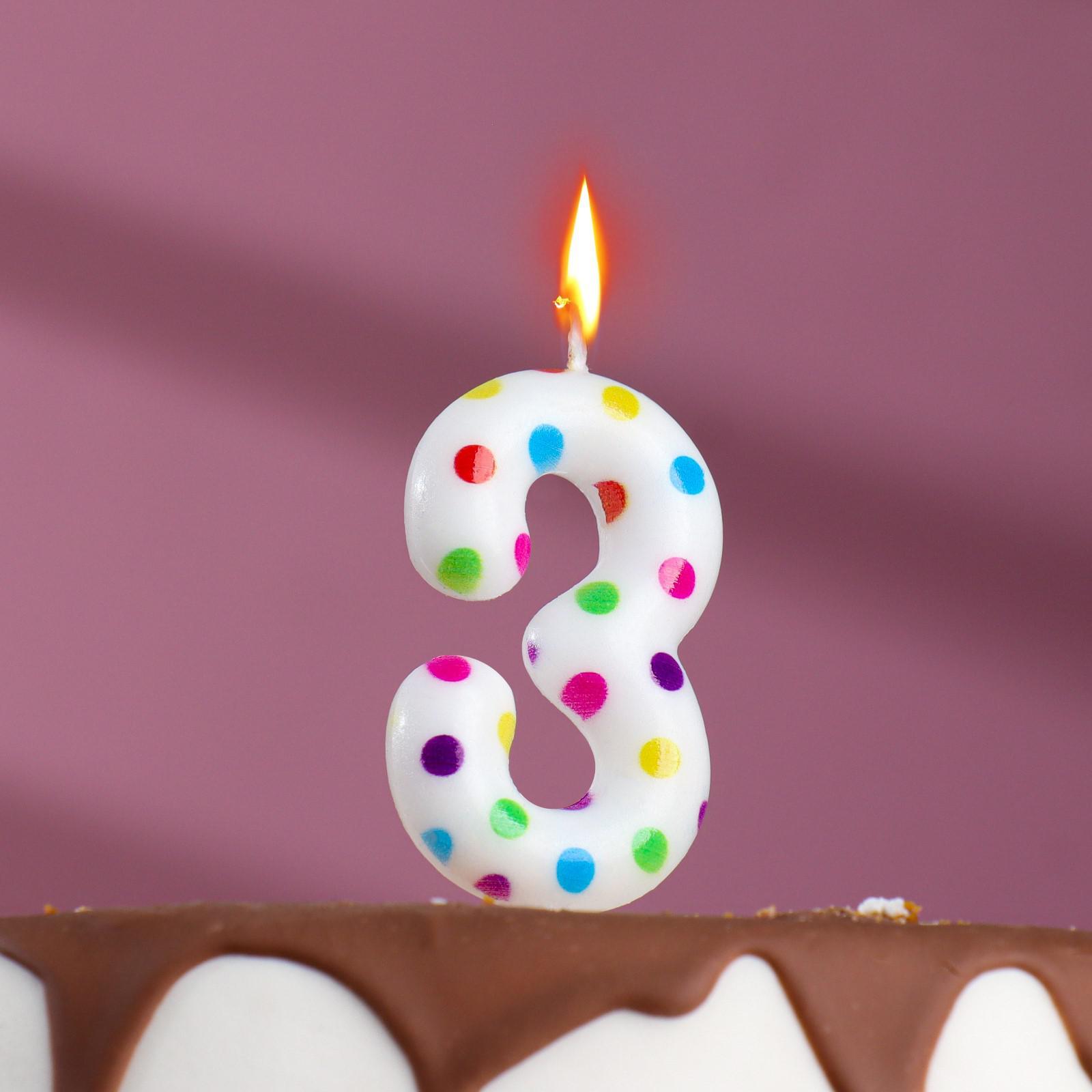 —Свеча для торта Цифра 3 Цветное конфетти 1/100