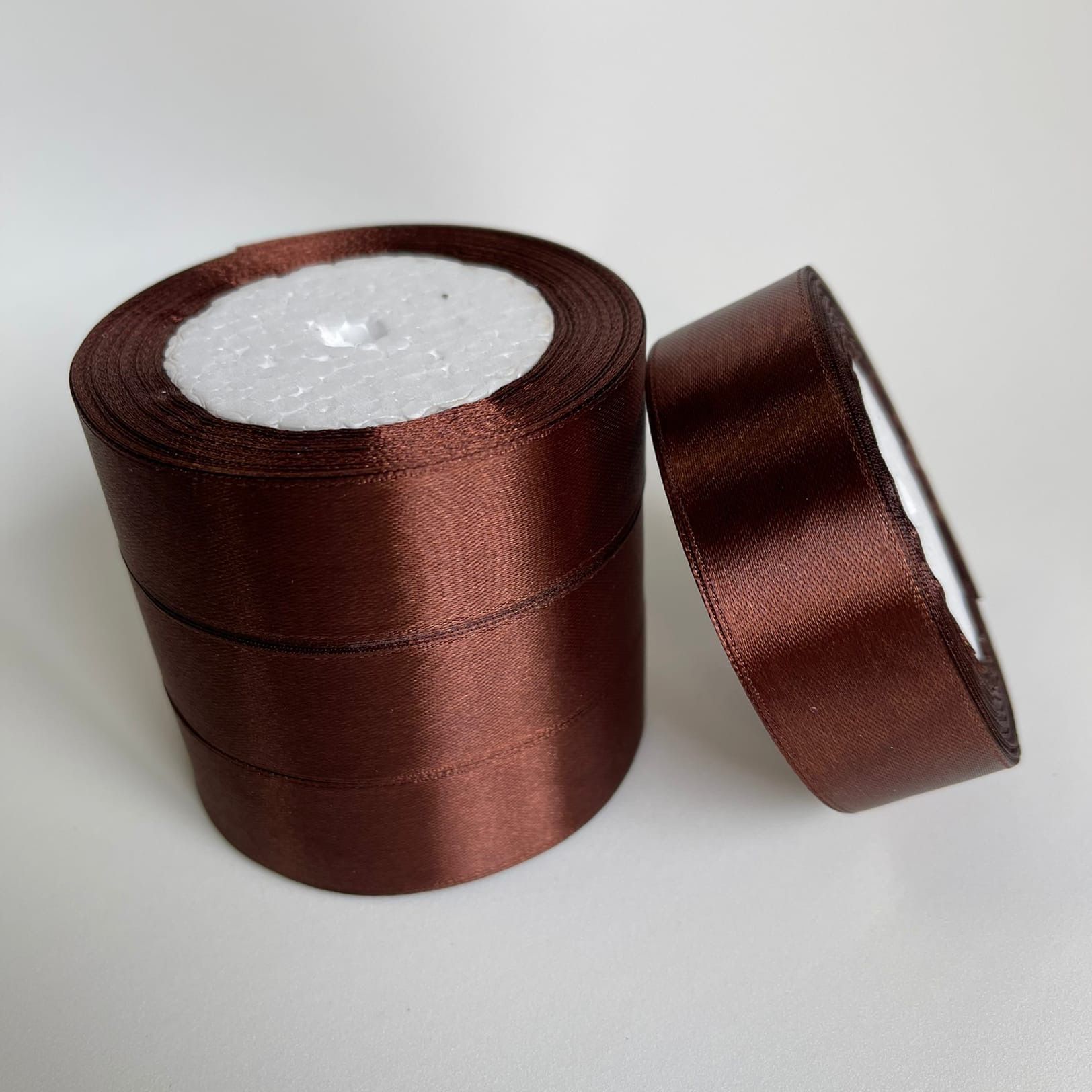 —Лента атласная 25мм 25м шоколад 1/5