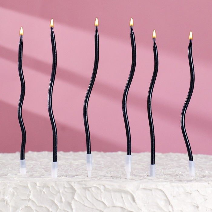 Свеча для торта Серпантин витые мокрый асфальт 6шт 1/400 оптом и в розницу в Ижевске, цены в каталоге с доставкой
