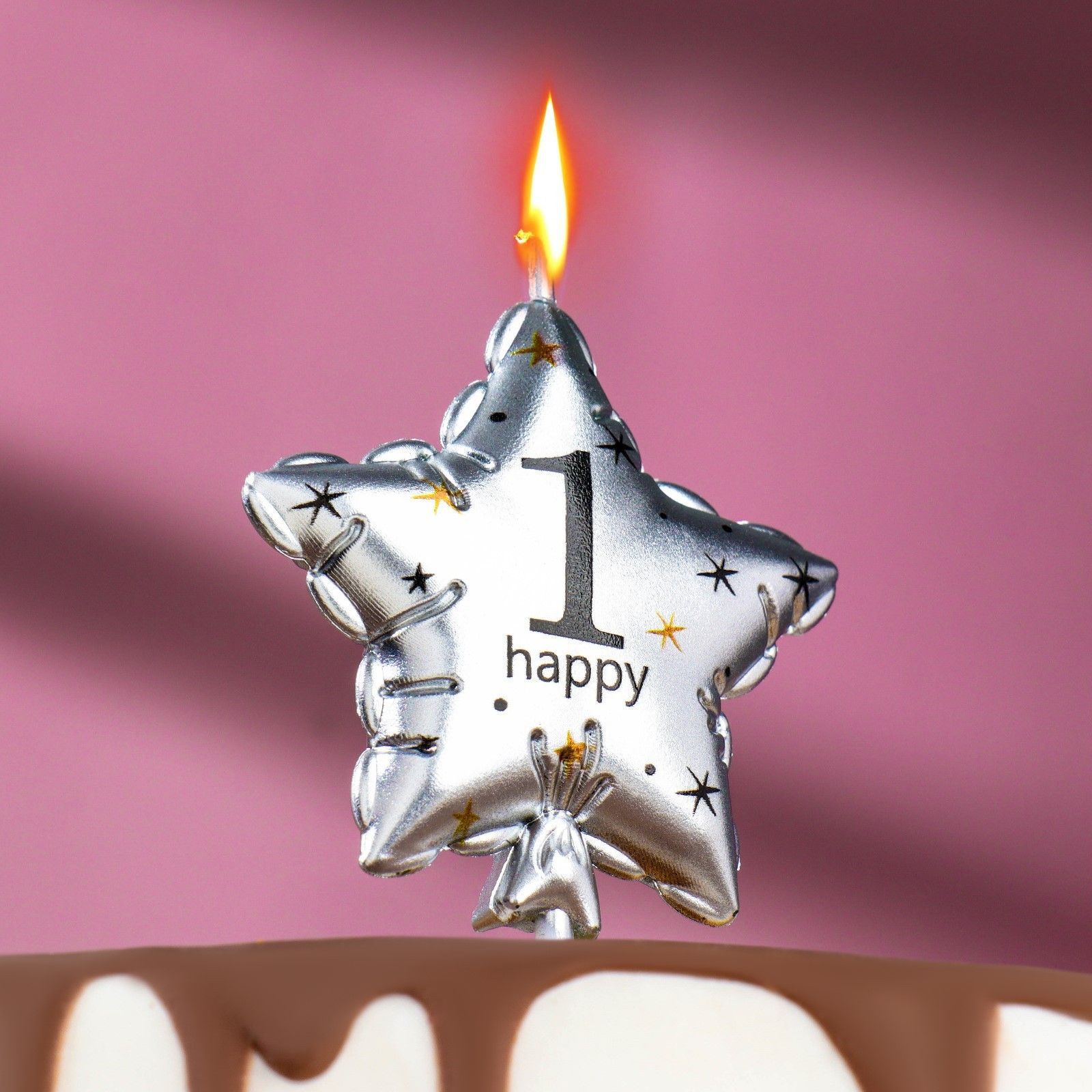 —Свеча для торта Звезда Цифра 1 серебро 1/30/360