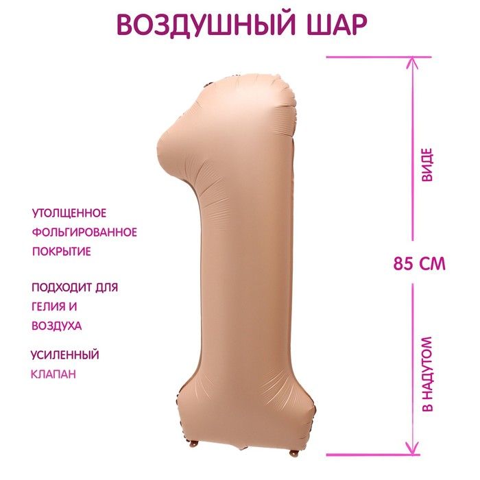 Шар фольгированный Цифра 1 85см цвет карамель 1/25/300