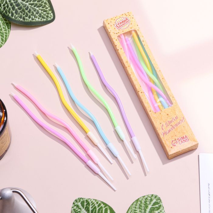 —Свеча для торта Серпантин витые разноцветные 6шт 1/1