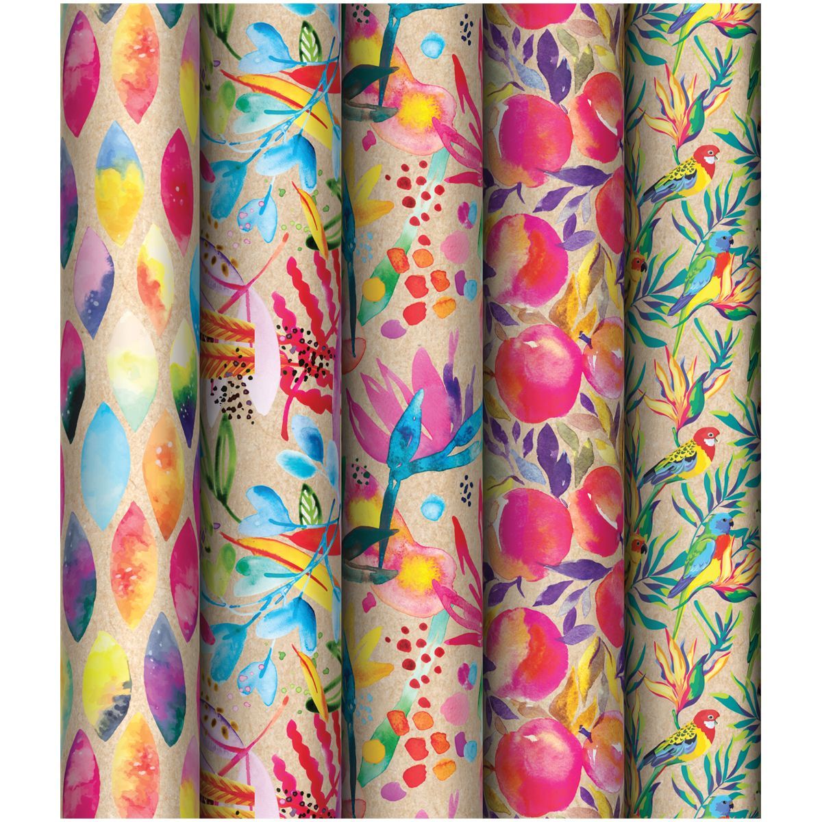 Бумага подарочная глянц 70х100см 70 г/м2 ассорти 5шт Акварельные штрихи MESHU 1/50