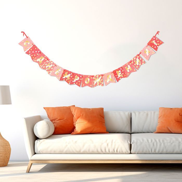 Гирлянда на ленте С Днём Рождения! розовый цвет 300см 1/1