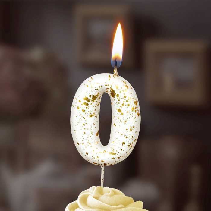 —Свеча для торта Белые брызги Цифра 0 1/30