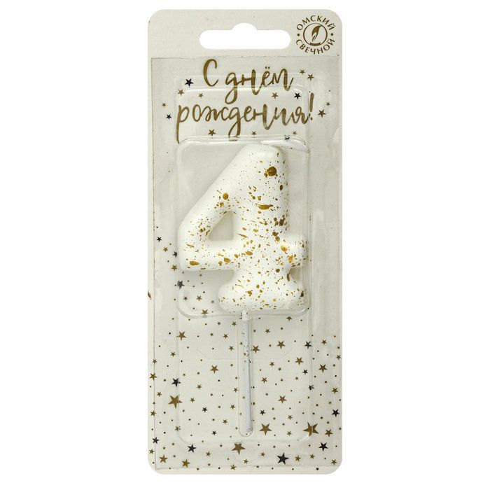 —Свеча для торта Белые брызги Цифра 4 1/30