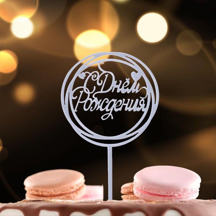 Топпер для торта С днем рождения, серебряный 1/20 оптом и в розницу в Ижевске, цены в каталоге с доставкой