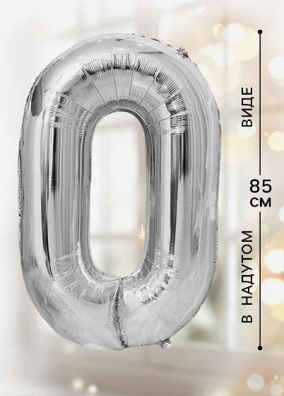 Шар фольгированный Цифра 0 85см цвет серебро 1/20/500 оптом и в розницу в Ижевске, цены в каталоге с доставкой