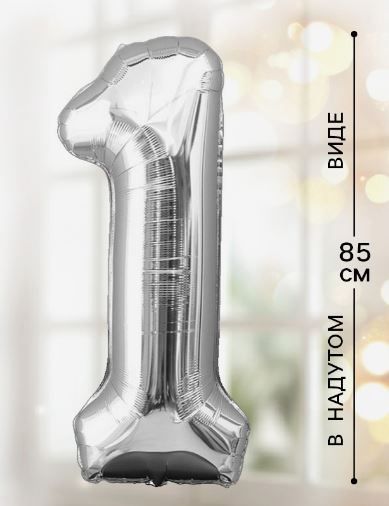 Шар фольгированный Цифра 1 85см цвет серебро 1/20/500 оптом и в розницу в Ижевске, цены в каталоге с доставкой