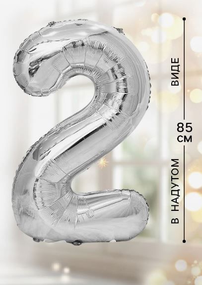 —Шар фольгированный Цифра 2 85см цвет серебро 1/20/500