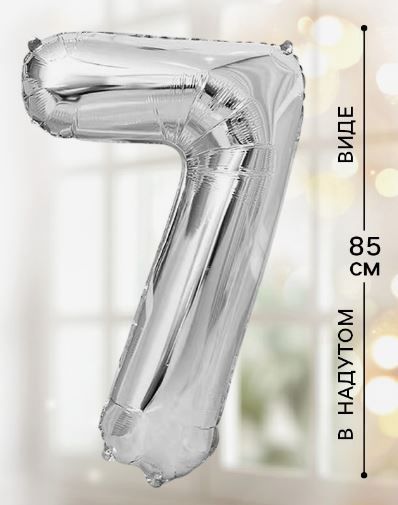 Шар фольгированный Цифра 7 85см цвет серебро 1/20/500 оптом и в розницу в Ижевске, цены в каталоге с доставкой
