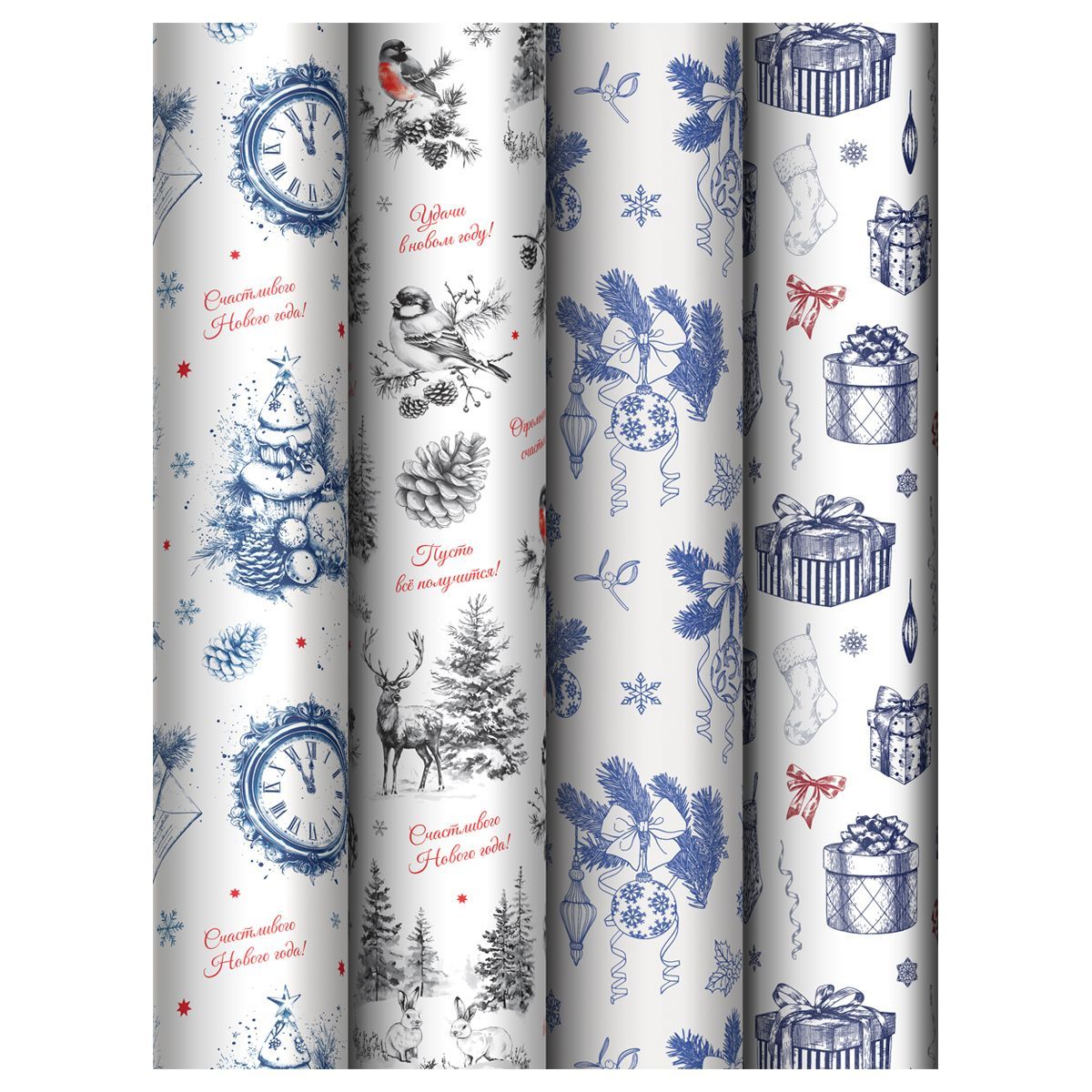 НГ Бумага подарочная 70х100см 80г/м глянец ассорти Christmas Eve 1/52